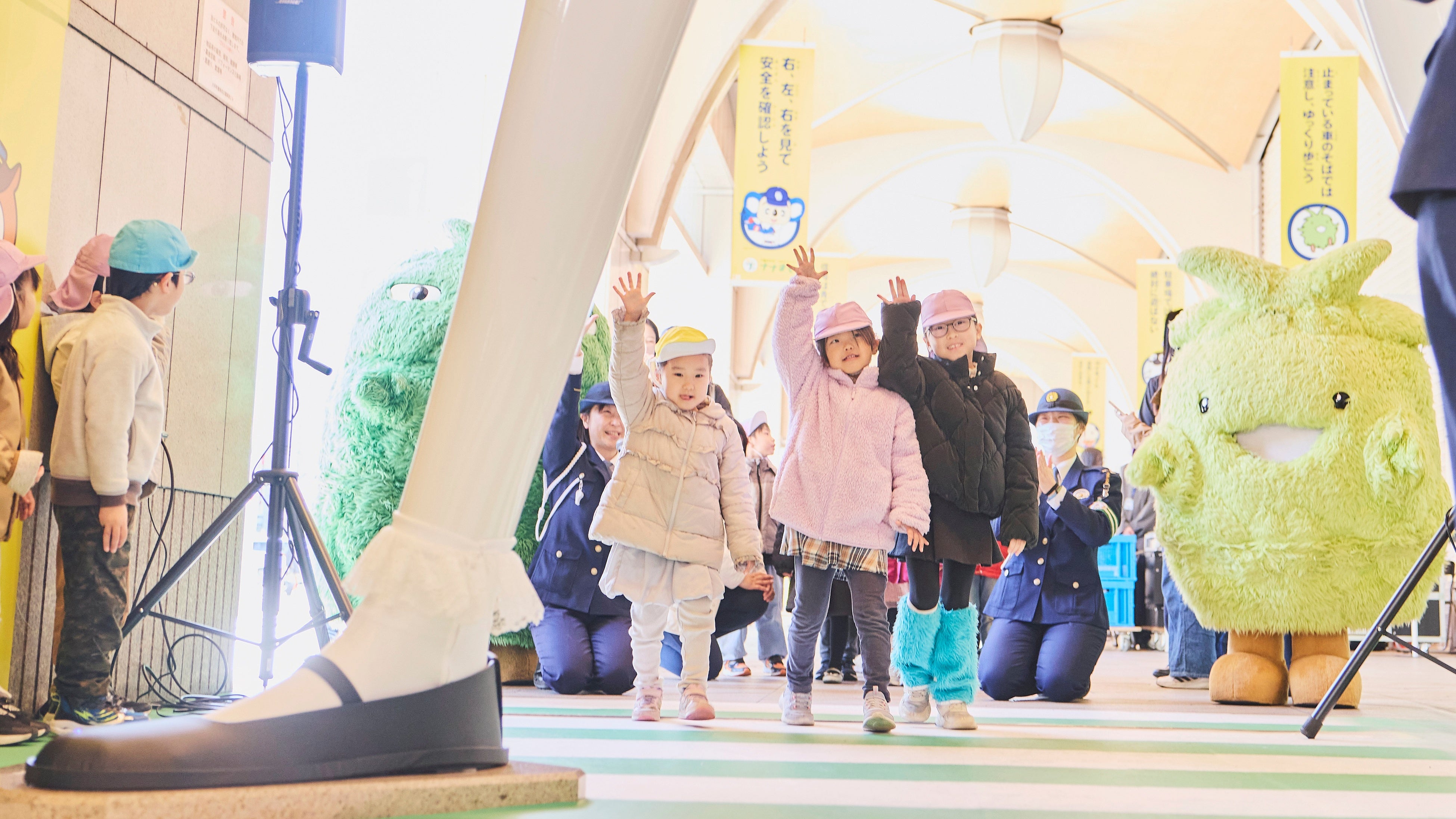 本プロジェクトでは、保護者・ドライバー・自転車などさまざまな立場から、児童が事故に遭わないための行動につなげるなど、児童を社会で守る気運醸成に貢献することを目指しています。1月の「ナナちゃん人形」が園児に扮して実施した啓発活動に続き、今回「ナナちゃん人形」※3が、52年の歴史の中で、初めて7歳児に変身するとともに、東海で親しまれている7体のキャラクター(モリゾー&キッコロ、ドアラ、グランパスくん、はち丸、コノハけいぶ、クック)と交通安全について親子で楽しく学べるエリアを創出しました。