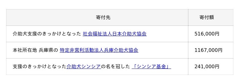 ※契約募金のうち、名古屋市内の6営業所の売上相当分を、愛知県長久手市にて介助犬総合訓練センター 「シンシアの丘」を運営する日本介助犬協会へ寄付いたします。社員にとってより身近な施設に寄付をすることで、「自分たちの頑張りが役立っている」という貢献実感を持ち、自社の社会貢献活動への参画意識が高まると考えています。