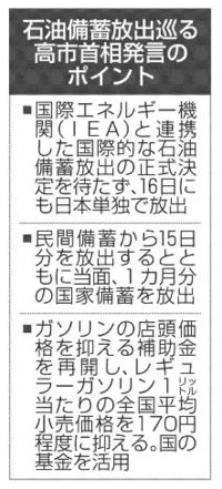 ガソリン170円に抑制 首相、補助金支給表明 2026年3月12日 05:00 日本単独での石油備蓄放出を表明する高市首相=11日午後、首相公邸 政府は11日、ガソリン価格を抑制... 残り742文字(全文:759文字) この記事をお読みいただくには「デジタルプラン」または「宅配+デジタルプラン」の会員登録が必要です。無料会員の方はログインしてマイページからコース変更してください。デジタルプランまたは宅配+デジタルプランをご登録中の方はログインしてください。 岐阜新聞デジタル会員に登録すると 無料会員向け記事が読める ニュースレターで最新情報が受け取れる デジタルプラン、宅配+デジタルプランなら Webオリジナルコンテンツが読める 紙面ビューアが読める チケットの先行発売に参加できる お得なクーポンが使える 新規登録ページ ログインページ トップ 岐阜のニュース ガソリン170円に抑制 首相、補助金支給表明 関連記事 ソフト女子・大垣ミナモ、主将鈴村「一戦必勝」今季へ決意 JDリーグ10日開幕 第43回岐阜オープンクラシック2026、あす4日開幕 プロ・アマ頂上決戦 FC岐阜、強敵撃破で勢いつなげ あす4日、アウェーで大宮戦 ネモフィラ、爽やか青の世界 可児市、ぎふワールド・ローズガーデン 虎逃げ切る ★大谷、次回登板は9日 おすすめ記事 岐阜県で今週末どこ行こう?【4月4、5日】 五輪金メダル・村瀬心椛選手、岐阜市役所に凱旋 500人出迎えに「涙出そう」 第43回岐阜オープンクラシック2026、あす4日開幕 プロ・アマ頂上決戦 村瀬心椛選手「岐阜に生まれて良かった」4年後は2種目金メダル宣言 市民栄誉賞受賞