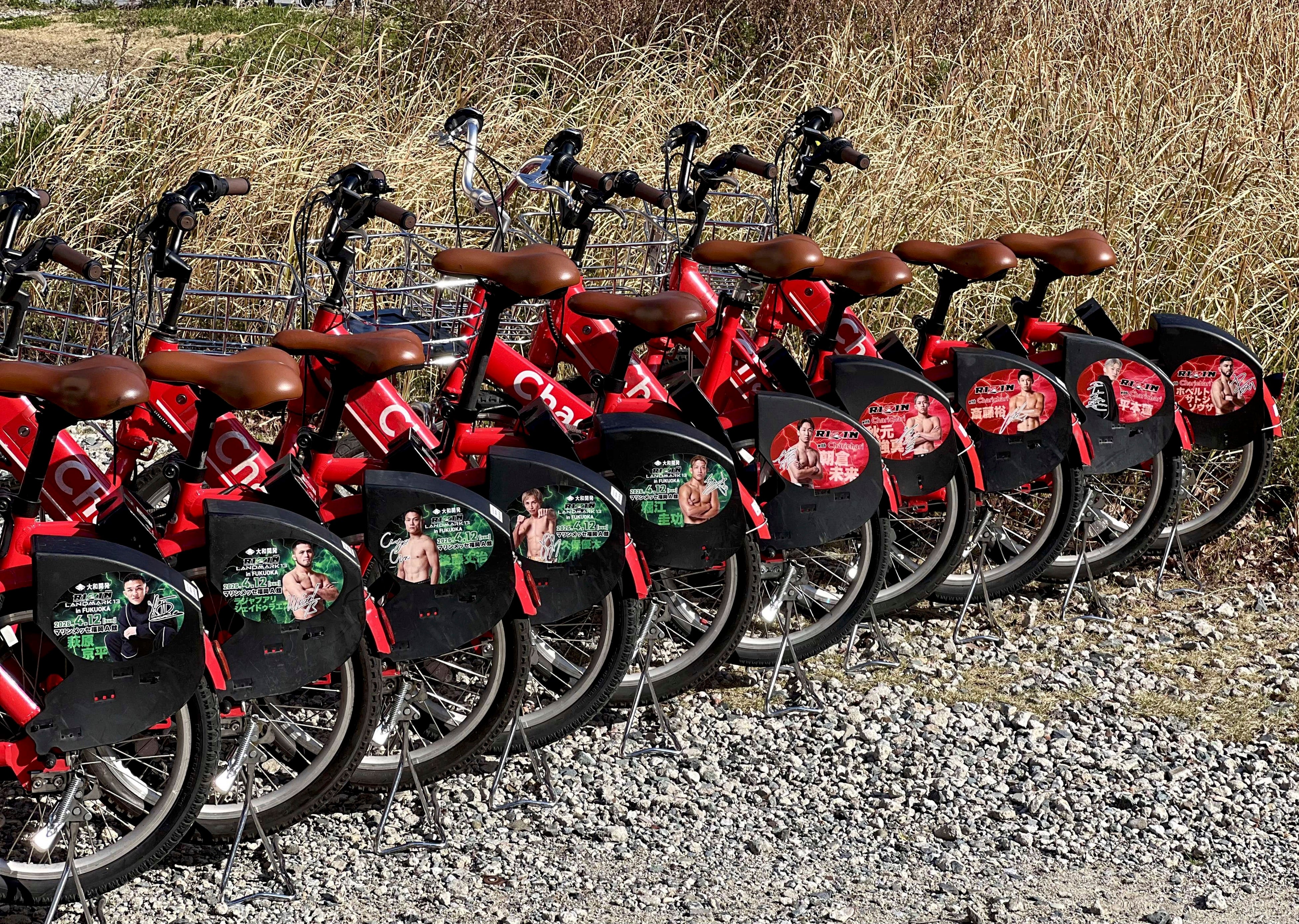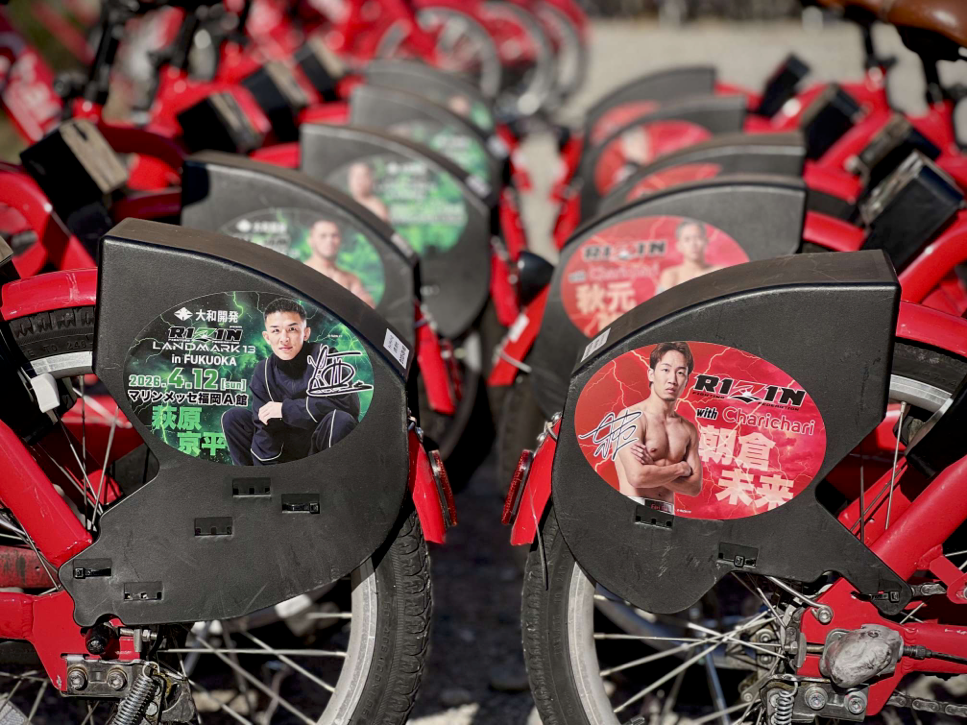 本企画では、大会までの期間限定でファイターの写真を施した「RIZINコラボチャリチャリ」500台を運用するほか、大会当日、会場に臨時ポートを設置し観戦アクセスを強化します。
