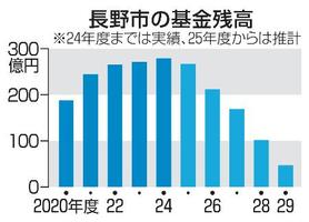 昨年10月公表の市の推計によると、施設改修などで25年度以降、財源不足が年間10億〜70億円生じ、財政調整基金などを取り崩して対応する。ほか二つの基金を合わせた残高は24年度末の279億円から29年度末に47億円まで減る見通しだ。