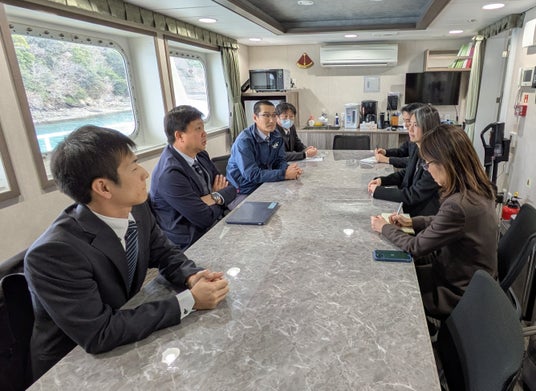 当日は、練習船「鳥羽丸」の見学のほか、学生によるAI・IoT技術を活用した取組事例、国際交流の現状について紹介を行いました。その後、国際的な人材育成や技術協力の可能性などについて、意見交換が行われました。