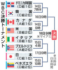 WBC2026 侍、ベネズエラと準々決勝 米国2位で通過 2026年3月13日 05:00 WBC1次リーグの韓国戦で2ランを放ち、迎えられる鈴木=7日、東京ドーム ニカラグア戦で本塁打を放ったベネズエラのアクーニャ=9日、マイアミ(共同) 【マイアミ共同】ワールド・ベース... 残り1697文字(全文:1714文字) この記事をお読みいただくには「デジタルプラン」または「宅配+デジタルプラン」の会員登録が必要です。無料会員の方はログインしてマイページからコース変更してください。デジタルプランまたは宅配+デジタルプランをご登録中の方はログインしてください。 岐阜新聞デジタル会員に登録すると 無料会員向け記事が読める ニュースレターで最新情報が受け取れる デジタルプラン、宅配+デジタルプランなら Webオリジナルコンテンツが読める 紙面ビューアが読める チケットの先行発売に参加できる お得なクーポンが使える 新規登録ページ ログインページ トップ 岐阜のニュース WBC2026 侍、ベネズエラと準々決勝 米国2位で通過 関連記事 ソフト女子・大垣ミナモ、主将鈴村「一戦必勝」今季へ決意 JDリーグ10日開幕 第43回岐阜オープンクラシック2026、あす4日開幕 プロ・アマ頂上決戦 FC岐阜、強敵撃破で勢いつなげ あす4日、アウェーで大宮戦 ネモフィラ、爽やか青の世界 可児市、ぎふワールド・ローズガーデン 虎逃げ切る ★大谷、次回登板は9日 おすすめ記事 岐阜県で今週末どこ行こう?【4月4、5日】 飛騨地域に春の訪れ 飛騨一宮水無神社で生きびな祭 大野町で国天然記念物「揖斐二度ザクラ」が満開 花の中に新しいつぼみ 岐阜市の「道三まつり」、雨予報で一部の予定変更