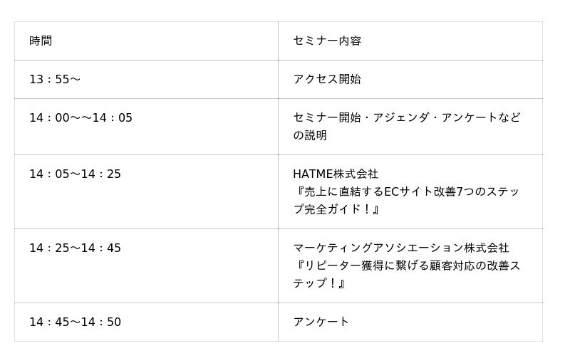 ■ セミナースケジュール及び内容