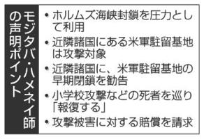 モジタバ師「必ず報復」 初の声明 反米路線を継承 2026年3月14日 05:00 【イスタンブール共同】イランの新... 残り700文字(全文:717文字) この記事をお読みいただくには「デジタルプラン」または「宅配+デジタルプラン」の会員登録が必要です。無料会員の方はログインしてマイページからコース変更してください。デジタルプランまたは宅配+デジタルプランをご登録中の方はログインしてください。 岐阜新聞デジタル会員に登録すると 無料会員向け記事が読める ニュースレターで最新情報が受け取れる デジタルプラン、宅配+デジタルプランなら Webオリジナルコンテンツが読める 紙面ビューアが読める チケットの先行発売に参加できる お得なクーポンが使える 新規登録ページ ログインページ トップ 岐阜のニュース モジタバ師「必ず報復」 初の声明 反米路線を継承 関連記事 ミートパイのテイクアウト専門店人気 多治見市にオープン、オージービーフ100% 高次脳機能障害、理解の一歩に 支援法施行、岐阜県内の当事者が思い 「ヤクザから金受け取っている」「室外機に現金置け」特殊詐欺相次ぐ 多治見署管内、20代も被害 おむすびカフェ、定番ツナマヨやキムクリチーなど限定も 美濃加茂市【記者オススメ! ギフテン】 ベイ今季初勝利 ★独立リーグが名称変更 おすすめ記事 岐阜市で2400万円相当の金の地金だまし取られる 70代男性被害、特殊詐欺か 桜彩るコースでプロアマ戦 岐阜オープン4日開幕、5日決勝は生中継 ホリエモン監修カレーが岐阜に初上陸! 出汁にこだわり、なぜかラーメン店で提供 飛騨生きびな祭、あす3日開催 飛騨一宮水無神社