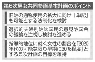 旧姓「単記」法制化を検討 第6次男女参画計画決定 2026年3月14日 05:00 政府は13日の閣議で、今後5年間... 残り800文字(全文:817文字) この記事をお読みいただくには「デジタルプラン」または「宅配+デジタルプラン」の会員登録が必要です。無料会員の方はログインしてマイページからコース変更してください。デジタルプランまたは宅配+デジタルプランをご登録中の方はログインしてください。 岐阜新聞デジタル会員に登録すると 無料会員向け記事が読める ニュースレターで最新情報が受け取れる デジタルプラン、宅配+デジタルプランなら Webオリジナルコンテンツが読める 紙面ビューアが読める チケットの先行発売に参加できる お得なクーポンが使える 新規登録ページ ログインページ トップ 岐阜のニュース 旧姓「単記」法制化を検討 第6次男女参画計画決定 関連記事 ミートパイのテイクアウト専門店人気 多治見市にオープン、オージービーフ100% 高次脳機能障害、理解の一歩に 支援法施行、岐阜県内の当事者が思い 「ヤクザから金受け取っている」「室外機に現金置け」特殊詐欺相次ぐ 多治見署管内、20代も被害 おむすびカフェ、定番ツナマヨやキムクリチーなど限定も 美濃加茂市【記者オススメ! ギフテン】 ベイ今季初勝利 ★独立リーグが名称変更 おすすめ記事 岐阜市で2400万円相当の金の地金だまし取られる 70代男性被害、特殊詐欺か 桜彩るコースでプロアマ戦 岐阜オープン4日開幕、5日決勝は生中継 ホリエモン監修カレーが岐阜に初上陸! 出汁にこだわり、なぜかラーメン店で提供 飛騨生きびな祭、あす3日開催 飛騨一宮水無神社