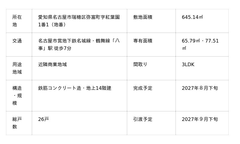 株式会社オープンハウスグループ(本社 東京都千代田区、代表取締役社長 福岡 良介、以下「当社」)のグループ会社である株式会社オープンハウス・ディベロップメントは、2026年3月14日(土)より新築分譲マンション「イノバス八事紅葉園」の販売を開始いたしましたのでお知らせいたします。