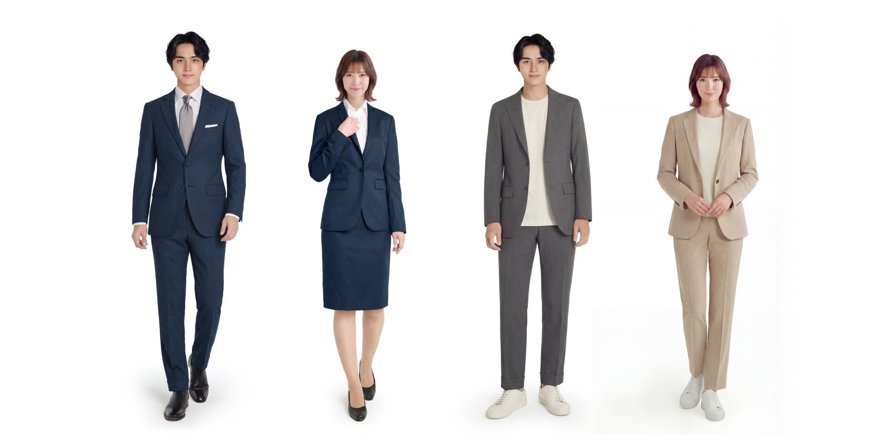 見た目は本格的なスーツでありながら軽く動きやすい伸縮性、自宅で洗えるイージーケア性を備えていることから、オン・オフ問わず着用できるビジネスカジュアルウェアとしても支持を集めています。