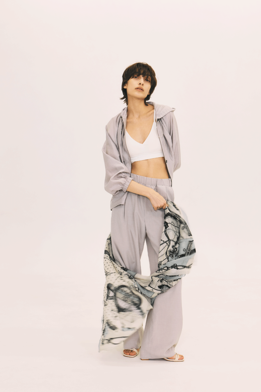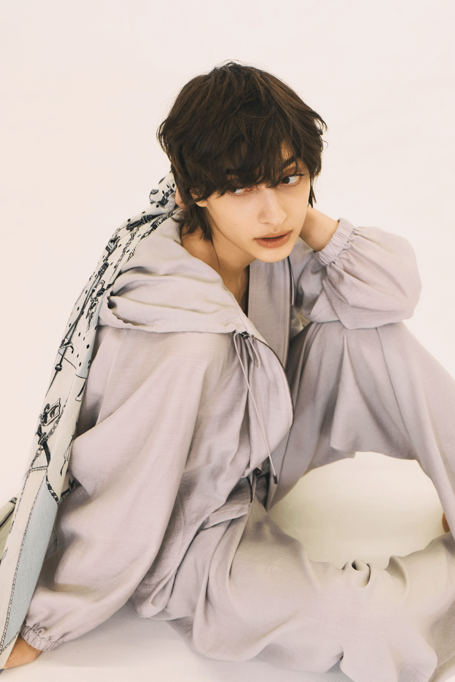 Blouson ¥18,700 Pants ¥14,300 Stole ¥15,400