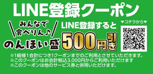 期間中、LINE友だち登録をしていただくと、上記の「のんほい盛」がさらに500円引きとお得になります。