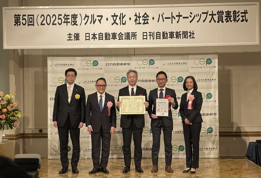 株式会社アイシン(本社:愛知県刈谷市、取締役社長:吉田守孝、以下アイシン)は、一般社団法人日本自動車会議所・日刊自動車新聞社が主催する「第5回 クルマ・文化・社会・パートナーシップ大賞」(以下、CSP大賞)において、乗り合い送迎サービス「チョイソコ」が「大賞」を初受賞しました。さらに部門賞として、道路維持管理支援サービス「みちログ」が「モビリティ・ソリューション賞」を受賞し、ダブル受賞となりました。