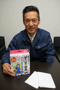 防除用医薬部外品の製造販売のタニサケ(揖斐郡池田町片山、清水勝己社長)は、枕やカーペットの下に置いてダニを誘引、捕獲するシート「ダニ捕り番長」を開発した。子どもやペットのいる家庭を中心に、ダニ対策製品のニーズが年々高まっている。ゴキブリ駆除剤「ゴキブリキャップ」を主力とし、昨年創業40周年を迎えた同社にとってもダニ対策関連の商品展開は初で、業界最長という約6カ月の持続期間や即効性を前面に打ち出し、新たな販路の拡大を目指す。