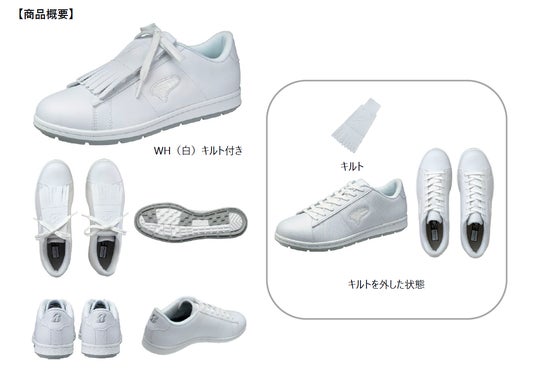 また、防水仕様になっており、雨や朝露の中でも快適にプレーいただけます。サイズラインアップは、メンズサイズ(25.0cm~27.0cm、28.0cm)に加え、レディスサイズに24.5cmを追加し(23.5cm~24.5cm)をラインアップしています。