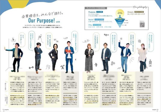 社内報『さんげつ』は、「社員の心の通い合い」を目的として1988年に創刊されました。現在は、“想いをつなぐ社内報”というコンセプトのもと、会社をもっと好きになってもらうことを目的に、年4回発刊しています。社員の仕事や想いにフォーカスし、「会社と社員」「人、チーム、組織」「今の自分と未来の自分」それぞれの想いをつなぐことで、より一体感を得られるコミュニケーションツールへとブラッシュアップを図っています。