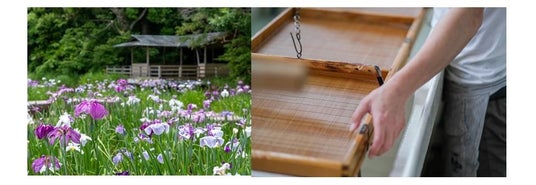 不純物を丁寧に取り除きながら抄紙される和紙。