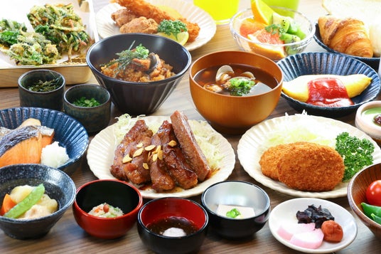 朝食は、ドーミーインならではの「ご当地料理」として、スタミナ抜群の「四日市とんてき」や「松阪牛コロッケ」をはじめ、旬の食材を使った小鉢横丁など、約50種類の和洋バイキングをご用意しております。