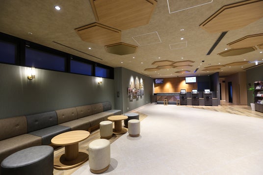 館内には、四日市市の文化や工業都市の歴史をモチーフとしたデザインを随所に取り入れています。ロビーはコンクリート調のタイルと、光をモチーフにした六角形の天井パネルを組み合わせ、四日市コンビナートの幻想的な夜景のきらめきを空間全体で表現しました。また、東海道を旅する情景や伝統工芸「萬古焼」の装飾をあしらい、地域の歴史と文化を感じていただけます。四日市市という街ならではの魅力と個性を体感できる、こだわりの空間デザインをぜひお楽しみください。