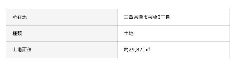 ・三重県津市の中心部の土地を取得(約3万平方メートル ・取得総額30億円以上)