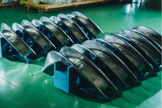 コイルケース10点の写真。全て繋げることで、らせん状の高温超伝導マグネットの土台となる。最終実証装置Helix HARUKA建設場所へ運び込み、組み立てを進める。