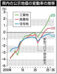 県内2年連続プラス 全用途 商・工業地で上昇 公示地価 2026年3月18日 05:00 国土交通省は17日、県内の公示地... 残り1019文字(全文:1036文字) この記事をお読みいただくには「デジタルプラン」または「宅配+デジタルプラン」の会員登録が必要です。無料会員の方はログインしてマイページからコース変更してください。デジタルプランまたは宅配+デジタルプランをご登録中の方はログインしてください。 岐阜新聞デジタル会員に登録すると 無料会員向け記事が読める ニュースレターで最新情報が受け取れる デジタルプラン、宅配+デジタルプランなら Webオリジナルコンテンツが読める 紙面ビューアが読める チケットの先行発売に参加できる お得なクーポンが使える 新規登録ページ ログインページ トップ 岐阜のニュース 県内2年連続プラス 全用途 商・工業地で上昇 公示地価 関連記事 岐聖大短大部閉学式、60年の歴史刻んだ碑 卒業生らにお披露目 小林陵、総合2位 二階堂は4位 W杯男子最終戦 スキー・ジャンプ 丸山が3位で今季総合2位 W杯女子最終戦 きょうのスポーツ ★深田は種目別4位 スノーボード W杯HP最終戦 戸塚V、種目別優勝 おすすめ記事 【森嶋ルポ】県岐阜商、秋とは別チーム! 岐阜総合にリベンジし地区優勝 県大会・全出場校決まる【ぎふ高校野球】 大相撲岐阜場所へ相撲のぼり登場 8月2日に岐阜市で開催 岐阜市と関市の長良川 鮎の漁期、前倒し探り稚鮎を放流 【岐阜スポ写真ギャラリー】FC岐阜、ホームで大勝!