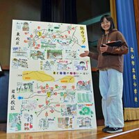 来月に統合する高山市の東小学校(同市松之木町)と岩滝小学校(同市滝町)の児童が、それぞれの校区の特徴や魅力を調べ、まとめ上げた「魅力マップ」が完成した。お手製の地図に棚田やササユリの群生地といった見どころ24カ所を描いたA3サイズの力作。児童らに配り、今後一緒に学んでいく互いの理解促進に役立ててもらう。