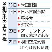 首相は会談後、昼食会や夕食会に出席。20日はワシントン近郊のアーリントン国立墓地で献花する。21日に帰国する。