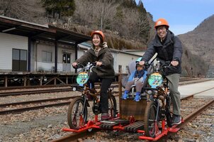 旧神岡鉄道の線路上を自転車で走るレールマウンテンバイク「ガッタンゴー」の今季の営業が20日、岐阜県飛騨市神岡町内で始まった。今年は沿線の雪もほとんど解けており、訪れた人たちがペダルを力強く踏みしめながら、春めいた奥飛騨の風情を体感した。