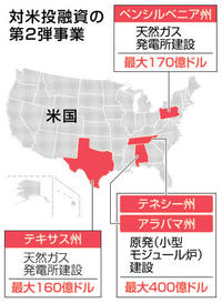 対米投資第2弾11兆円 次世代原発など3事業 2026年3月21日 05:00 【ワシントン共同=臼井春菜】日米... 残り736文字(全文:753文字) この記事をお読みいただくには「デジタルプラン」または「宅配+デジタルプラン」の会員登録が必要です。無料会員の方はログインしてマイページからコース変更してください。デジタルプランまたは宅配+デジタルプランをご登録中の方はログインしてください。 岐阜新聞デジタル会員に登録すると 無料会員向け記事が読める ニュースレターで最新情報が受け取れる デジタルプラン、宅配+デジタルプランなら Webオリジナルコンテンツが読める 紙面ビューアが読める チケットの先行発売に参加できる お得なクーポンが使える 新規登録ページ ログインページ トップ 岐阜のニュース 対米投資第2弾11兆円 次世代原発など3事業 関連記事 ご当地ボンゴレパスタ登場 安八町の浅野撚糸本社併設カフェ新メニュー ゴルフ 西郷7位発進 米女子第1R ★久常と平田、47位スタート ゴルフ Vポイント女子 佐久間2位発進 朴首位 きょうのスポーツ 大相撲春場所13日目 霧島賜杯王手 琴勝峰、豊昇龍に敗れ3敗目 おすすめ記事 長良川遊覧船、日常変える45分 岐阜市で運航スタート 書店「丸善」創業者・早矢仕有的の軌跡、ハヤシライスも実は…山県市出身、マーサで資料展開幕 ご当地ボンゴレパスタ登場 安八町の浅野撚糸本社併設カフェ新メニュー 上杉謙信の愛刀「三日月兼光」優美な品格 名古屋で刀剣特別展が開幕