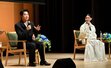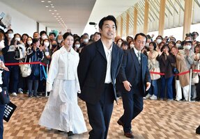 NHK大河ドラマ「豊臣兄弟!」で主人公の木下小一郎長秀(豊臣秀長)を演じる俳優の仲野太賀さんと幼なじみ「直(なお)」役の白石聖さんが21日、県庁でトークショーに臨んだ。20階の展望ロビーから「美濃」を眺めた仲野さんは「演じているものの解像度がぐっと上がった」と目を輝かせながら語った。