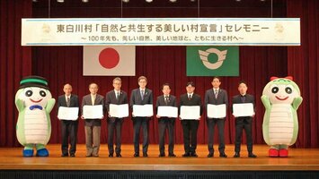 自然と共生する美しい村、次代へ継ぐ 東白川村が宣言 政治・行政 2026年3月22日 13:15 宣言書に署名した村内各種団体の代表者ら=東白川村神土、はなのき会館 東白川村の「自然と共生する美しい村宣言」セレモニーが、同村神土のはなのき会館で行われた。村を含めて村内の9団体が宣言書に署名し、自然環境と経済が両立した持続可能な村づくりを目指す決意を新たにした。 村では1972年に... 全文:684文字 この記事をお読みいただくには「デジタルプラン」または「宅配+デジタルプラン」の会員登録が必要です。無料会員の方はログインしてマイページからコース変更してください。デジタルプランまたは宅配+デジタルプランをご登録中の方はログインしてください。 岐阜新聞デジタル会員に登録すると 無料会員向け記事が読める ニュースレターで最新情報が受け取れる デジタルプラン、宅配+デジタルプランなら Webオリジナルコンテンツが読める 紙面ビューアが読める チケットの先行発売に参加できる お得なクーポンが使える 新規登録ページ ログインページ トップ 岐阜のニュース 政治・行政 自然と共生する美しい村、次代へ継ぐ 東白川村が宣言 関連記事 東白川村長選2陣営が出席 立候補予定者説明会 東白川村人事(4月1日) ◇東白川村人事 議会短信 東白川村 蔵元自慢の新酒が勢ぞろい 関酒造組合、美濃加茂市で飲み比べ会 議会短信 おすすめ記事 岐阜県庁から舞台の地を一望 大河ドラマ「豊臣兄弟!」仲野太賀さんと白石聖さんがトークショー 岐阜県内ひとり親世帯、物価高に燃料高騰が追い打ち 「節約でどうにかなるようなレベルではない」 淡墨桜や荘川桜、岐阜県を代表する桜ライトアップ JR岐阜駅北口 明治安田J2・J3百年構想リーグ第7節 FC岐阜PK負け 2度追い付かれる