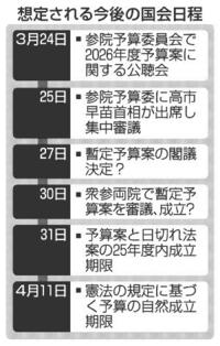 首相、暫定予算編成検討 27日の閣議決定浮上 2026年3月24日 05:00 高市早苗首相は23日の自民党役員... 残り828文字(全文:845文字) この記事をお読みいただくには「デジタルプラン」または「宅配+デジタルプラン」の会員登録が必要です。無料会員の方はログインしてマイページからコース変更してください。デジタルプランまたは宅配+デジタルプランをご登録中の方はログインしてください。 岐阜新聞デジタル会員に登録すると 無料会員向け記事が読める ニュースレターで最新情報が受け取れる デジタルプラン、宅配+デジタルプランなら Webオリジナルコンテンツが読める 紙面ビューアが読める チケットの先行発売に参加できる お得なクーポンが使える 新規登録ページ ログインページ トップ 岐阜のニュース 首相、暫定予算編成検討 27日の閣議決定浮上 関連記事 ミートパイのテイクアウト専門店人気 多治見市にオープン、オージービーフ100% 高次脳機能障害、理解の一歩に 支援法施行、岐阜県内の当事者が思い 「ヤクザから金受け取っている」「室外機に現金置け」特殊詐欺相次ぐ 多治見署管内、20代も被害 おむすびカフェ、定番ツナマヨやキムクリチーなど限定も 美濃加茂市【記者オススメ! ギフテン】 ベイ今季初勝利 ★独立リーグが名称変更 おすすめ記事 飛騨生きびな祭、あす3日開催 飛騨一宮水無神社 桜トンネル、参道彩る 池田町・弓削禅寺、しだれ桜見頃 ミートパイのテイクアウト専門店人気 多治見市にオープン、オージービーフ100% 【速報】岐阜市のコンビニ強盗、容疑の男逮捕 愛知県警に出頭