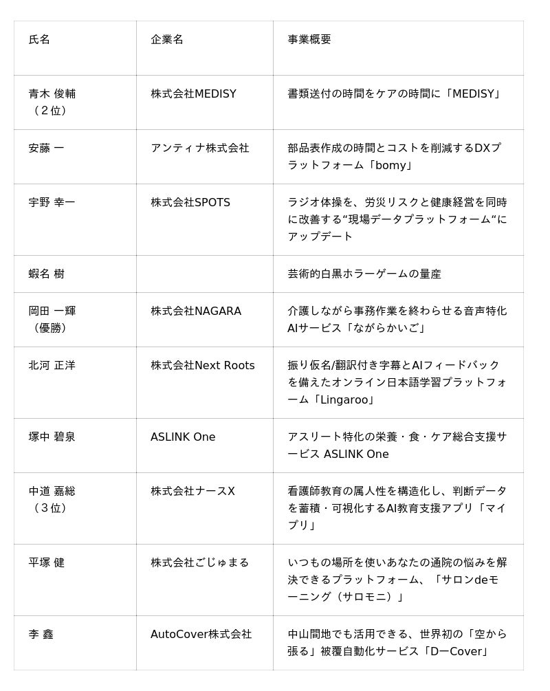 1.「AICHI STARTUP BATTLE2025」受賞者について(敬称略)