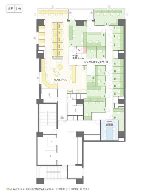 席数:【コワーキングスペース】オープンスペース28席/【レンタルオフィス】19戸
