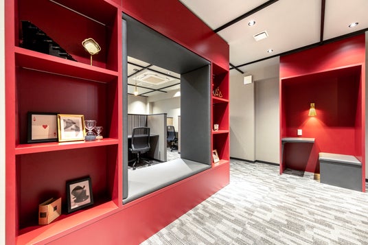 BIZcomfort名古屋太閤通口「太閤秀吉功路」にあやかり、出世や成功を応援する想いを込めて武将をイメージした空間デザインが特徴のシェアオフィス。
