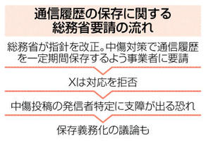 X、履歴保存延長を拒否 中傷対策で総務省要請 2026年3月25日 05:00 総務省がインターネット上の誹謗(... 残り684文字(全文:701文字) この記事をお読みいただくには「デジタルプラン」または「宅配+デジタルプラン」の会員登録が必要です。無料会員の方はログインしてマイページからコース変更してください。デジタルプランまたは宅配+デジタルプランをご登録中の方はログインしてください。 岐阜新聞デジタル会員に登録すると 無料会員向け記事が読める ニュースレターで最新情報が受け取れる デジタルプラン、宅配+デジタルプランなら Webオリジナルコンテンツが読める 紙面ビューアが読める チケットの先行発売に参加できる お得なクーポンが使える 新規登録ページ ログインページ トップ 岐阜のニュース X、履歴保存延長を拒否 中傷対策で総務省要請 関連記事 おむすびカフェ、定番ツナマヨやキムクリチーなど限定も 美濃加茂市【記者オススメ! ギフテン】 ベイ今季初勝利 ★独立リーグが名称変更 きのうのプロ野球 ★セ・リーグが日程追加 竜9年ぶり開幕5連敗 おすすめ記事 【速報】岐阜市のコンビニ強盗、容疑の男逮捕 愛知県警に出頭 飛騨牛、成田と羽田空港JAL国際線ラウンジに初採用 外国人客に大人気 追立涼子さん死去 更生保護活動に尽力、藍綬褒章 人工芝グラウンド完成 可児市運動公園、4日にスポーツマルシェ