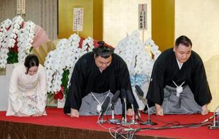 霧島は音羽山部屋の宿舎がある堺市東区で昇進伝達式に臨み「さらなる高みを目指して一生懸命努力します」と口上を述べた。相撲協会の使者は伊勢ノ海理事(元幕内北勝鬨)と浦風親方(元幕内敷島)が務めた。