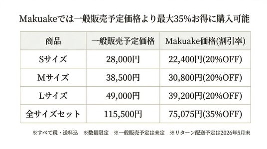一般販売予定価格とMakuake価格の比較表