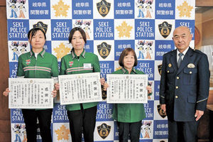 特殊詐欺被害防いだ 関署 コンビニに感謝状 社会 2026年3月26日 05:00 表彰を受けた(左から)坂本雅代さん、長澤美香さん、辻加代子さんら=関署 関署は、特殊詐欺被害を未然に防い... 残り399文字(全文:416文字) この記事をお読みいただくには「デジタルプラン」または「宅配+デジタルプラン」の会員登録が必要です。無料会員の方はログインしてマイページからコース変更してください。デジタルプランまたは宅配+デジタルプランをご登録中の方はログインしてください。 岐阜新聞デジタル会員に登録すると 無料会員向け記事が読める ニュースレターで最新情報が受け取れる デジタルプラン、宅配+デジタルプランなら Webオリジナルコンテンツが読める 紙面ビューアが読める チケットの先行発売に参加できる お得なクーポンが使える 新規登録ページ ログインページ トップ 岐阜のニュース 社会 特殊詐欺被害防いだ 関署 コンビニに感謝状 関連記事 可児市長「地域の声届ける」 国民会議の有識者メンバー 初会合では給付付き控除に意見 岐阜女子大学長に田代氏 運営法人理事 桜の若木、成長願う 伊藤園が合掌村に寄贈 下呂市 防災無線チャイム「椰子の実」に 藤村の詩 中津川市、1日から オープン5周年で28、29日にイベント 関刃物会館 70社の2000点、1割引きに 乗算や除算、腕前競う 関市で中濃珠算大会 おすすめ記事 大野泰正元参院議員に罰金求刑 裏金事件の東京地裁公判 昭和の窓ガラス、多彩な模様に名前「民家解体時に捨てるなんて…」岐阜市の夫婦がリメーク 【独自】岐阜市の後藤副市長再任へ 木曽川最後の渡し舟「中野の渡し」運航終える 220年以上、人々の生活つなぐ