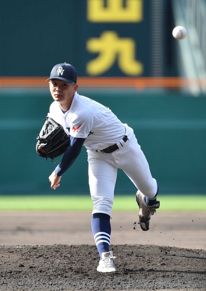 一回裏、2死から3番金子舜にストレートを左前打され、4番藤田蒼海には打ち取った三塁ゴロが失策となり、一、三塁とピンチを背負った。だが、5番古川颯太郎を初球の98キロのカーブに続く落差32キロの内角低めストレートで三ゴロに切って取ってから、谷之口劇場が幕を開ける。