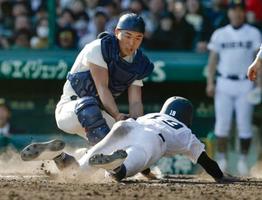 三重5―6大阪桐蔭 大阪桐蔭が競り勝つ 2026年3月26日 17:08 三重―大阪桐蔭 9回裏三重2死二塁、秋山の左前打で本塁を突いた二走中森をタッチアウトにする捕手藤田=甲子園 大阪桐蔭が競り勝った。六回までに12安打で5得点したが、その後は無安打と苦戦。タイブレークの延長十回に中島の犠飛で勝ち越し、逃げ切った。先発の吉岡が制球難で五回途中、4失点で降板。後を受けた石原、小川が踏ん張った。 三重は粘り強く反撃し、4―5の八回に大西の犠飛で追い付いた。九回は1死二塁のサヨナラ機を生かせなかった。 トップ 全国のニュース 三重5―6大阪桐蔭 関連記事 選手の中傷撲滅へ新プロジェクト ホンダ「諦めずに挑戦を続ける」 スマホ条例、変化なし59・3% 日本男子ゴルフ、活性化へ新体制 輪島、元日被災「職員初動遅れ」 旧統一教会信者「葬儀に支障」 おすすめ記事 【森嶋ルポ】大垣日大Wエース、全国に存在感 聖地で証明した投手力と夏への課題 選抜高校野球、山梨学院に惜敗【ぎふ高校野球】 可児市「さつきバス」、モンスターキャラクター生き生き 可児市出身のトマソンさんデザイン 大野泰正元参院議員に罰金求刑 裏金事件の東京地裁公判 昭和の窓ガラス、多彩な模様に名前「民家解体時に捨てるなんて…」岐阜市の夫婦がリメーク