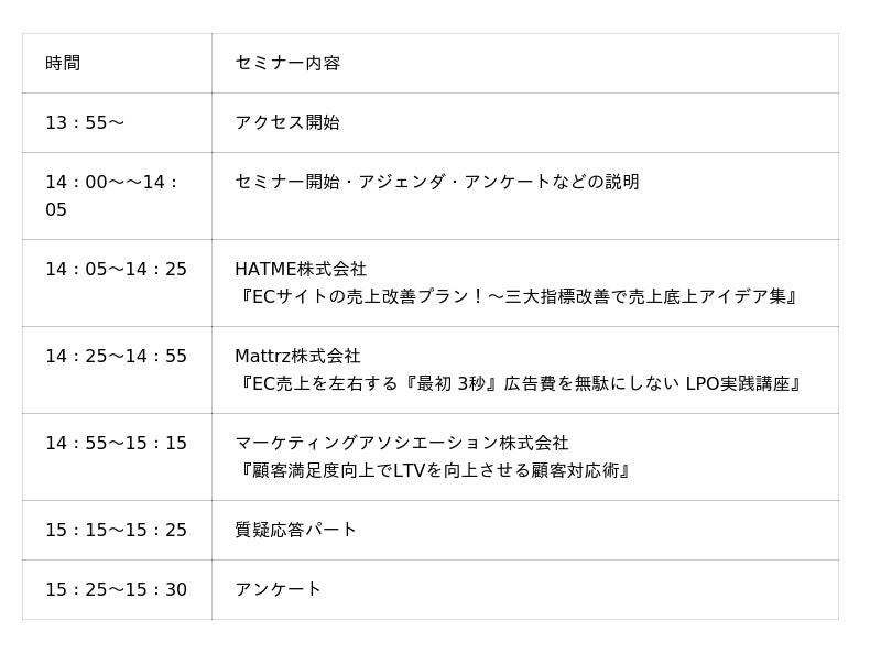 マーケティングアソシエーション株式会社の子会社であるHATME株式会社(本社:東京都台東区 代表取締役:中園広和、以下当社)は2026年4月9日(木)に、Mattrz株式会社、マーケティングアソシエーション株式会社と、3社共催ウェブセミナー「なぜ広告費は売上に変わらないのか?売上を“構造”で伸ばすEC戦略―集客・CVR・顧客体験をつなぐ設計図―」を、開催いたします