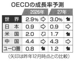 26年世界成長2.9%維持 OECD予測 日本も横ばい0.9% 2026年3月27日 05:00 【ブリュッセル共同】経済協力開発... 残り648文字(全文:665文字) この記事をお読みいただくには「デジタルプラン」または「宅配+デジタルプラン」の会員登録が必要です。無料会員の方はログインしてマイページからコース変更してください。デジタルプランまたは宅配+デジタルプランをご登録中の方はログインしてください。 岐阜新聞デジタル会員に登録すると 無料会員向け記事が読める ニュースレターで最新情報が受け取れる デジタルプラン、宅配+デジタルプランなら Webオリジナルコンテンツが読める 紙面ビューアが読める チケットの先行発売に参加できる お得なクーポンが使える 新規登録ページ ログインページ トップ 岐阜のニュース 26年世界成長2.9%維持 OECD予測 日本も横ばい0.9% 関連記事 ミートパイのテイクアウト専門店人気 多治見市にオープン、オージービーフ100% 高次脳機能障害、理解の一歩に 支援法施行、岐阜県内の当事者が思い 「ヤクザから金受け取っている」「室外機に現金置け」特殊詐欺相次ぐ 多治見署管内、20代も被害 おむすびカフェ、定番ツナマヨやキムクリチーなど限定も 美濃加茂市【記者オススメ! ギフテン】 ベイ今季初勝利 ★独立リーグが名称変更 おすすめ記事 岐阜市で2400万円相当の金の地金だまし取られる 70代男性被害、特殊詐欺か 桜彩るコースでプロアマ戦 岐阜オープン4日開幕、5日決勝は生中継 ホリエモン監修カレーが岐阜に初上陸! 出汁にこだわり、なぜかラーメン店で提供 飛騨生きびな祭、あす3日開催 飛騨一宮水無神社