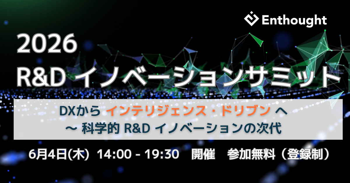 本イベントは化学・材料・ライフサイエンス・半導体、エネルギーなど分野におけるR&D・研究開発のリーダーや研究者、経営層に向けてAI活用やマテリアルズ・インフォマティクス(MI)の最新トレンドや実践事例を共有する場としてエンソートが主催しております。