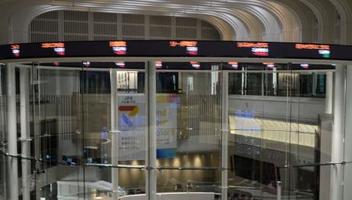 午前終値は前日終値比458円32銭安の5万3145円33銭。東証株価指数(TOPIX)は10・73ポイント安の3632・07。