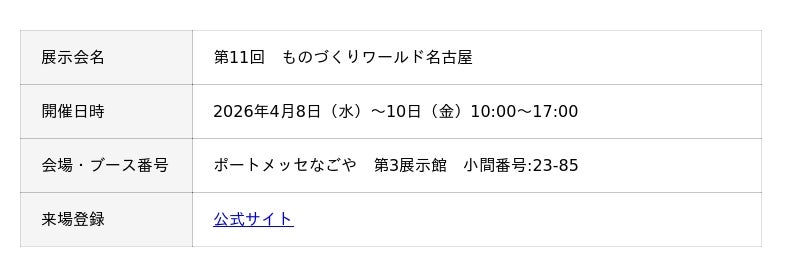 株式会社Phoxter(フォクスター)(本社:大阪府豊中市、代表取締役:園田淳一)は、2026年4月8日(水)~10日(金)にポートメッセなごやで開催される「第11回 ものづくりワールド名古屋」に出展いたします。