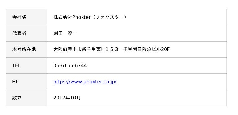 TEL:06-6155-6744 E-mail:pxinfo@phoxter.co.jp