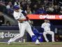 米大リーグ、アスレチックス戦の4回、メジャー初本塁打を放つブルージェイズ・岡本和真=29日、トロント(共同)