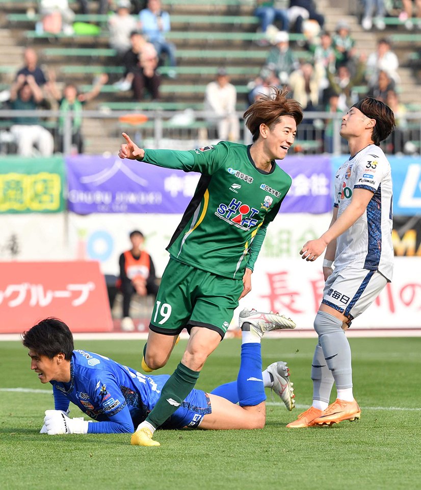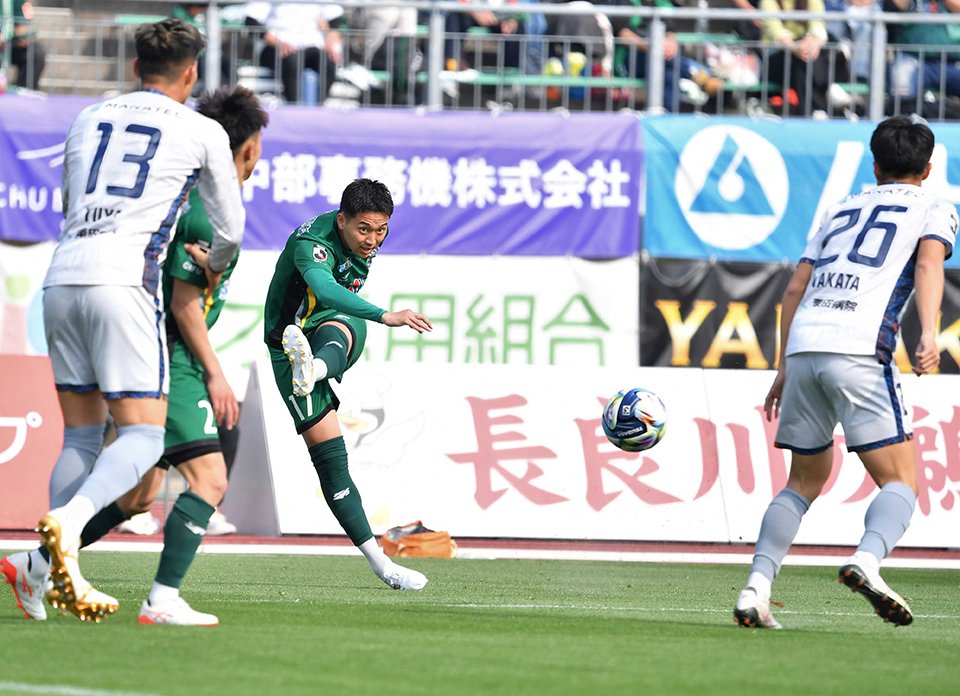 明治安田J2・J3百年構想リーグで、東B組のFC岐阜(J3)は28日、ホームの長良川競技場で長野(J3)に5―1で快勝しました。通算成績は6勝(PK勝ち1)2敗(PK負け1)の勝ち点18。順位は1位に躍り出ました。FC岐阜の戦いぶりを写真で紹介します。