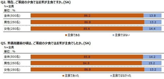 米価格高騰を受けても、今のところは夕食でのお米の喫食頻度や主食としての役割にも大きな変化はみられなかった