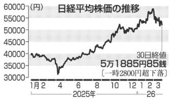 東証、一時2800円超下落 2026年3月31日 05:00 週明け30日の東京株式市場は、日... 残り533文字(全文:550文字) この記事をお読みいただくには「デジタルプラン」または「宅配+デジタルプラン」の会員登録が必要です。無料会員の方はログインしてマイページからコース変更してください。デジタルプランまたは宅配+デジタルプランをご登録中の方はログインしてください。 岐阜新聞デジタル会員に登録すると 無料会員向け記事が読める ニュースレターで最新情報が受け取れる デジタルプラン、宅配+デジタルプランなら Webオリジナルコンテンツが読める 紙面ビューアが読める チケットの先行発売に参加できる お得なクーポンが使える 新規登録ページ ログインページ トップ 岐阜のニュース 東証、一時2800円超下落 関連記事 FC岐阜、強敵撃破で勢いつなげ あす4日、アウェーで大宮戦 ネモフィラ、爽やか青の世界 可児市、ぎふワールド・ローズガーデン 虎逃げ切る ★大谷、次回登板は9日 ★佐野の世界戦が延期 逆襲のツバメ快進撃 サヨナラで開幕5連勝 おすすめ記事 五輪金メダル・村瀬心椛選手、岐阜市役所に凱旋 500人出迎えに「涙出そう」 村瀬心椛選手「岐阜に生まれて良かった」4年後は2種目金メダル宣言 市民栄誉賞受賞 ネモフィラ、爽やか青の世界 可児市、ぎふワールド・ローズガーデン チューリップ10万株、春の波 海津市・木曽三川公園センター